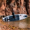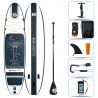 La construction en dropstitch et le PVC apportent légèreté, solidité et une grande résistance aux chocs. Elle se gonfle en quelques minutes avec une pompe manuelle double action et se transporte facilement une fois dégonflée et pliée avec ses accessoires dans le sac de transport inclus.