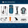Le stand up paddle gonflable vous sera livré en pack avec tous ses accessoires : 1 pompe de gonflage double action ; 2 pagaies en aluminium ajustables et modulables (pagaie kayak / pagaie paddle) ; 2 sièges de kayak ; 1 leash de sécurité ; 1 dérive centrale amovible ; 1 sac de transport confortable ; 1 sangle de transport ; un kit de réparation + manuel d'utilisation.